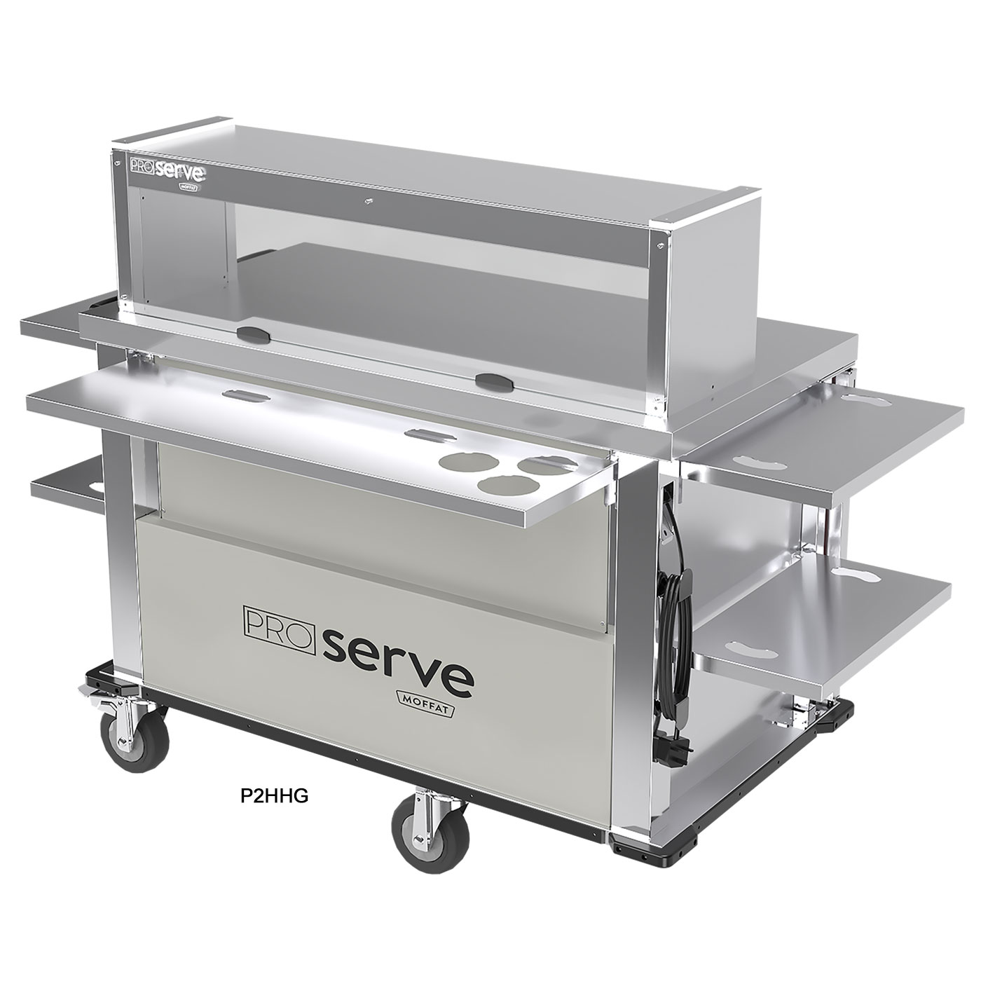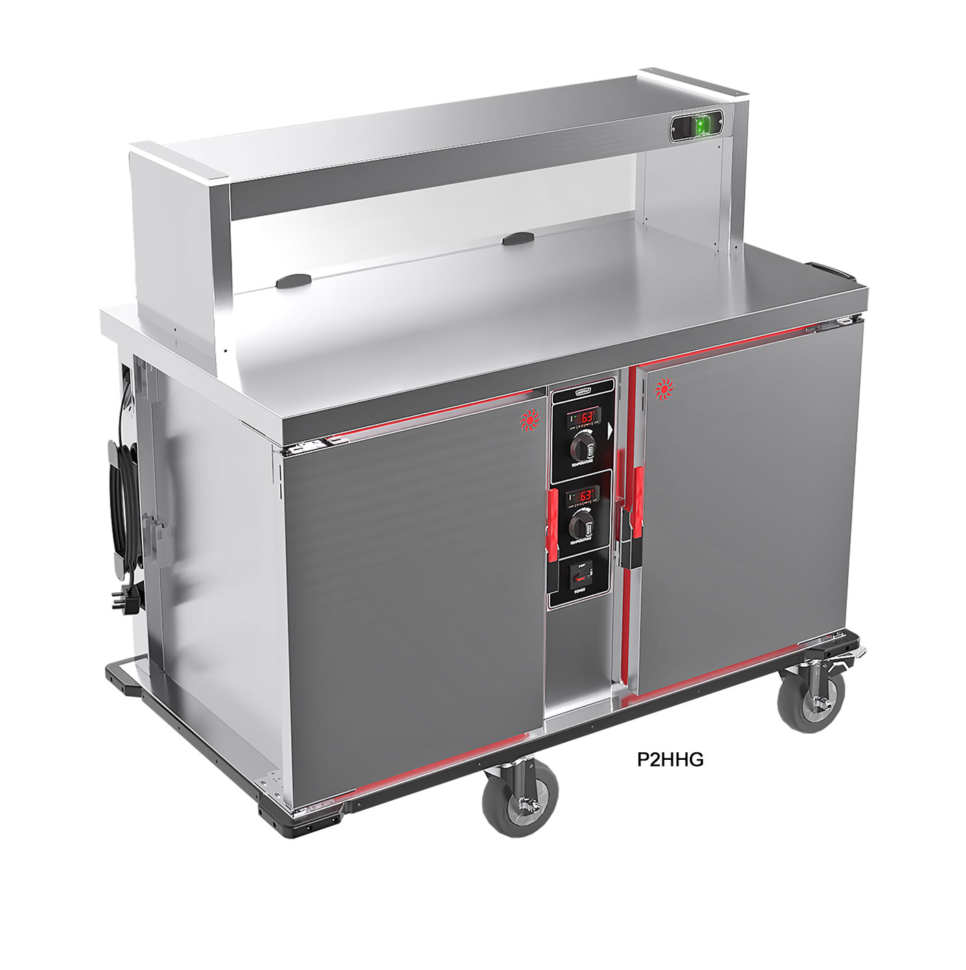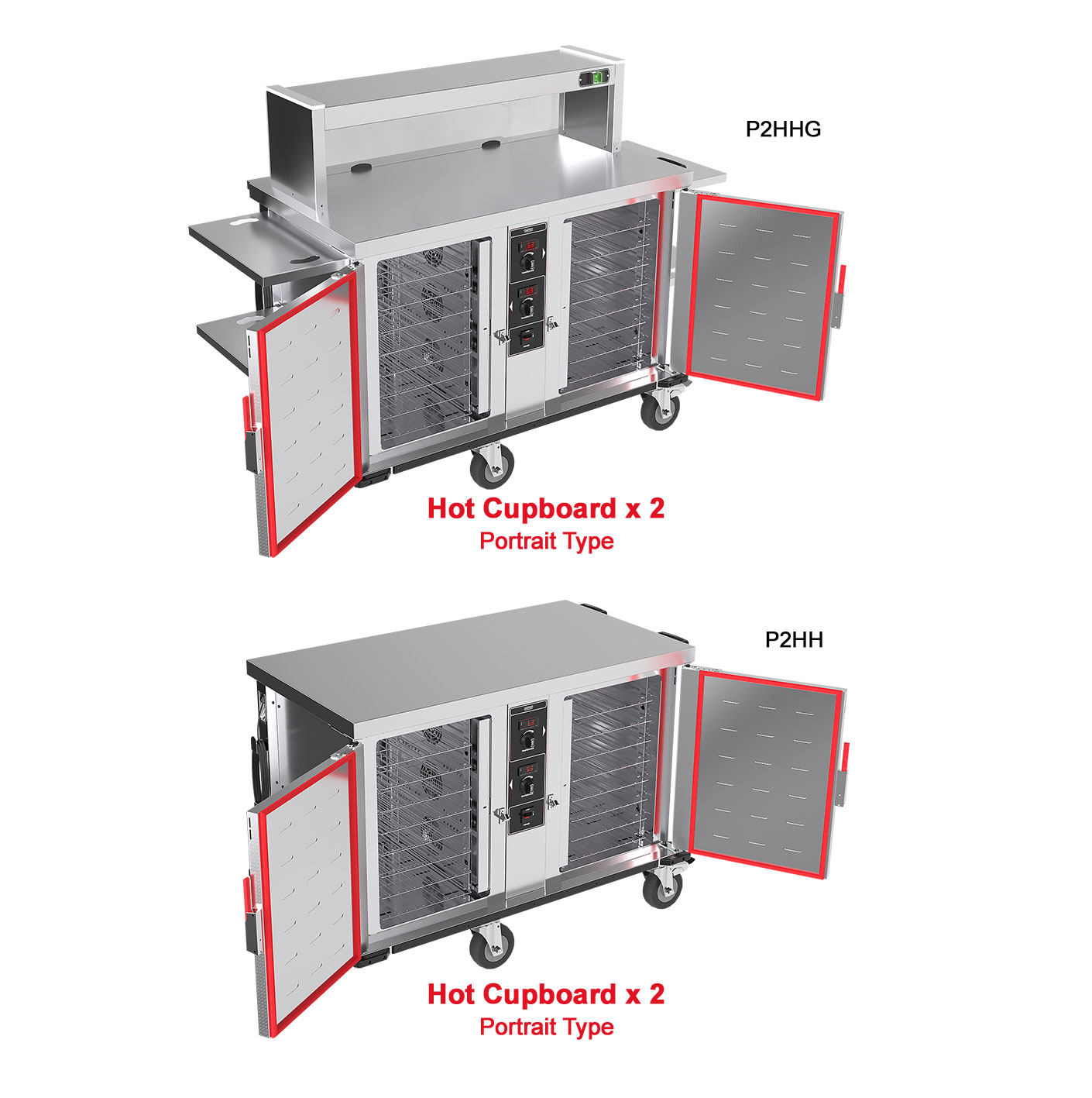 The P2HHG model has a gantry pass over shelf with full front screen, this is Illuminated and heated by quartz type lamps.