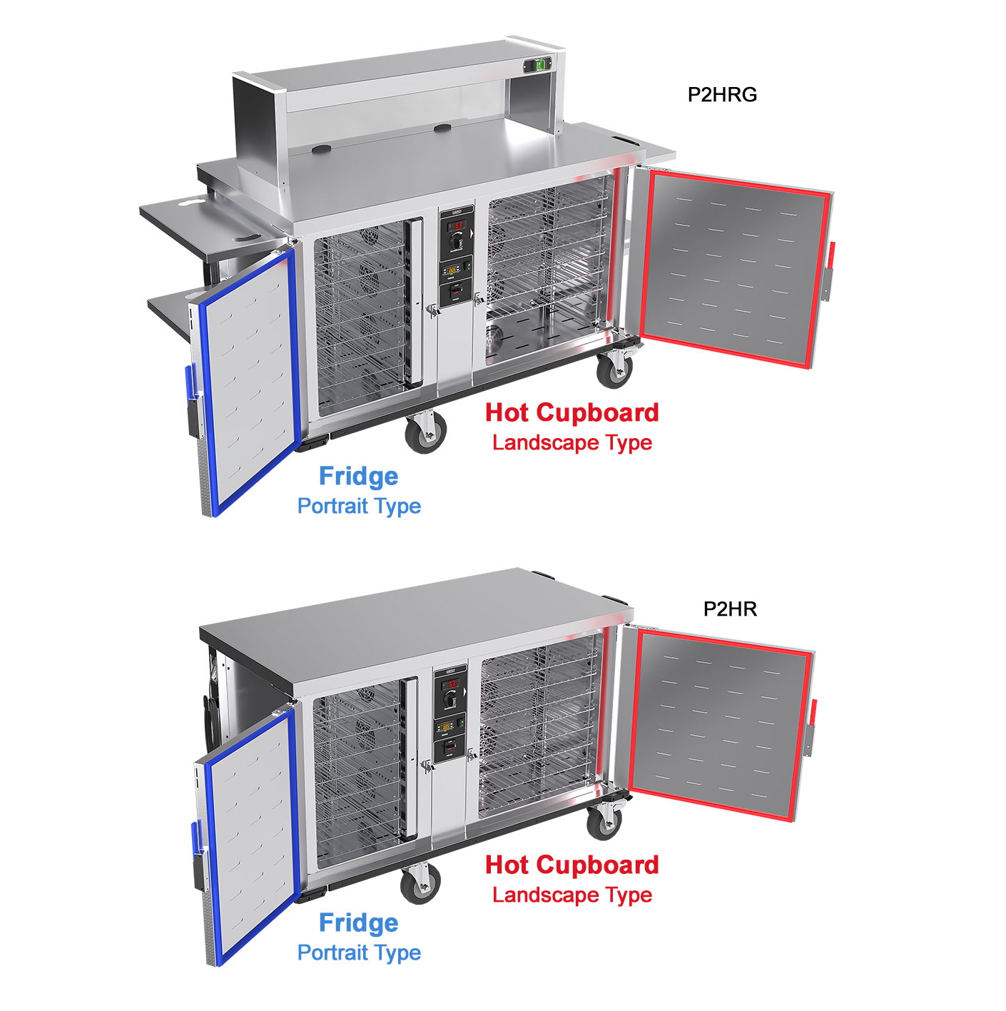 The P2HRG model has a gantry pass over shelf with full front screen, this is Illuminated and heated by quartz type lamps.