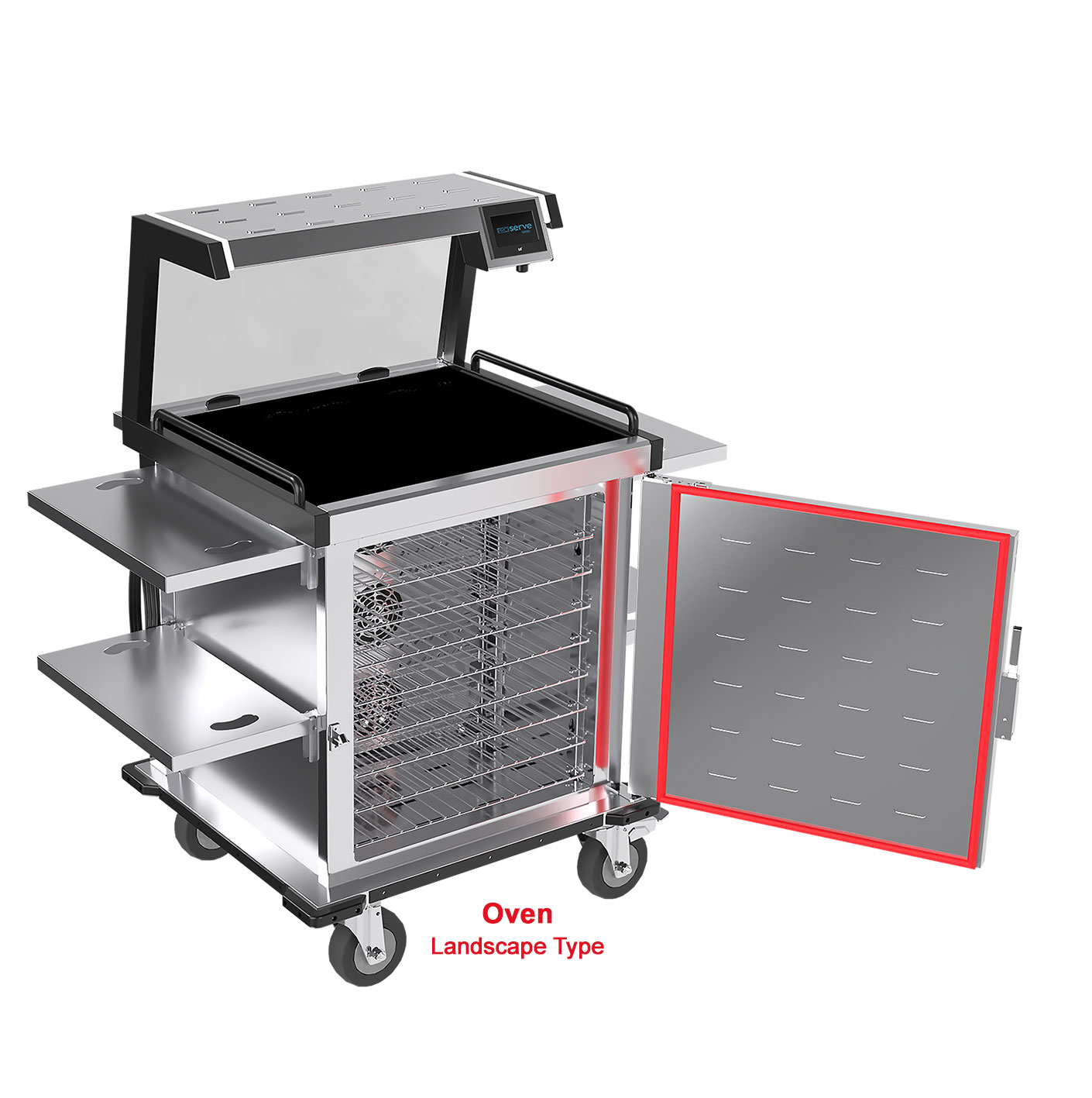 Purpose-built for cooking, regenerating, and serving fresh, chilled, or frozen bulk food, this unit gives customers the flexibility to choose their meal at the point of service. It’s ideal for multi-food portioning and distribution, featuring two completely independent ovens with unique multi-fan air re-circulation system allowing fast and even heat distribution throughout. Optimized for GN (Gastronorm) containers, there are eight shelf position in the oven set at 71 mm intervals . This allows up to eight GN 1/1 containers.