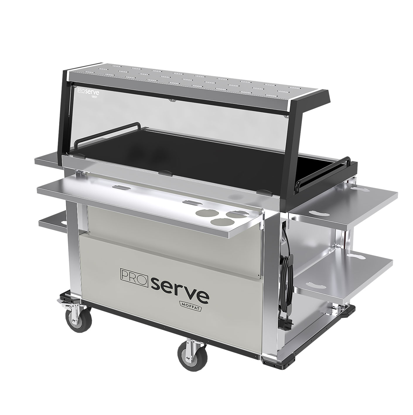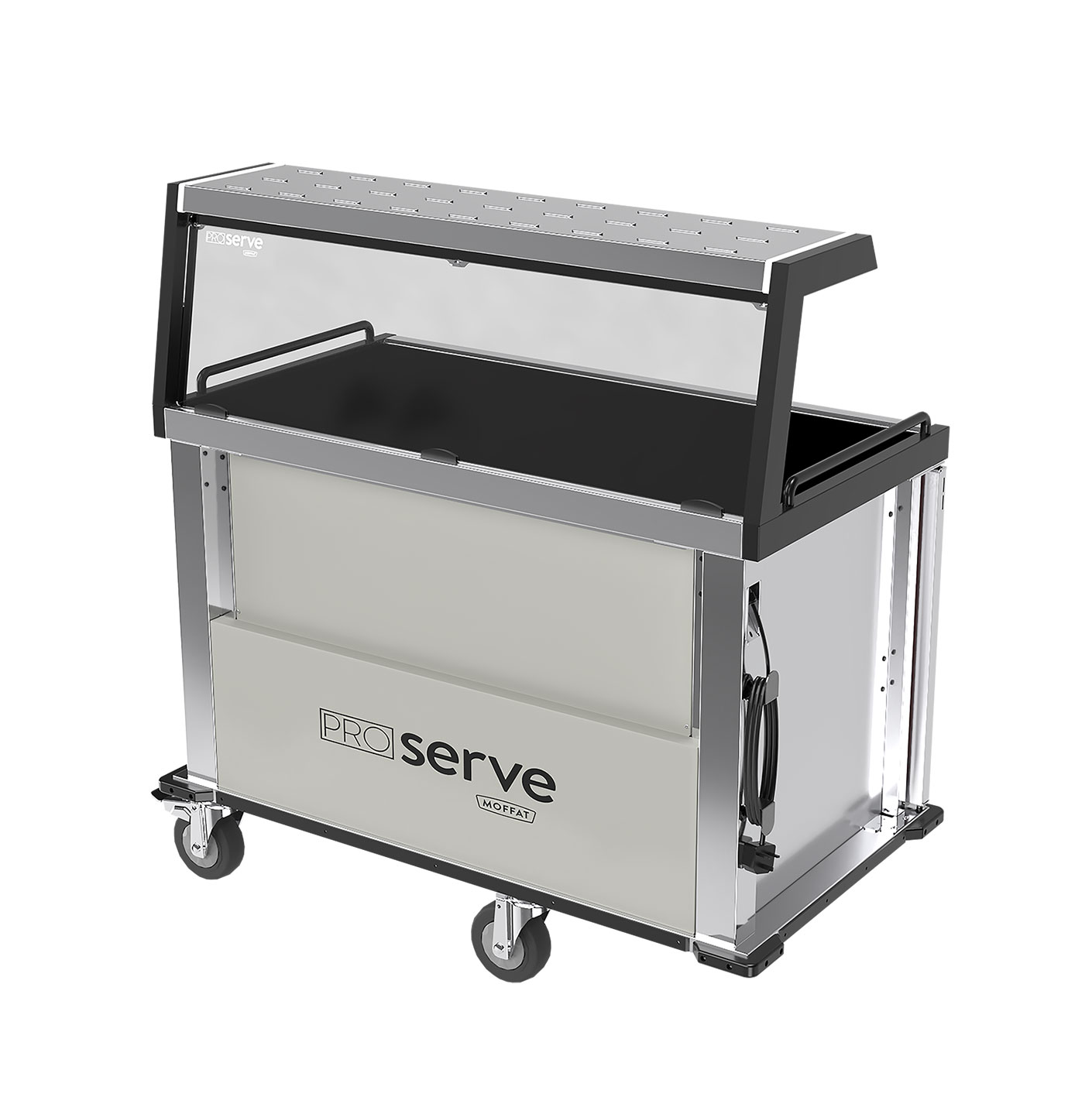 Moffat’s pioneering three-zone, multi-heat control system, providing precise management of food temperature, texture, and presentation. A stylish, black ceramic illuminated hot-top offers a self-regulating surface ideal for serving hot meals. Built for durability and hygiene, the unit features a bright polished stainless steel interior, satin-finished exterior panels, and plastic-coated front and sides. Heavy-duty hinged doors with robust slam-shut catches ensure long-lasting performance in demanding environments.