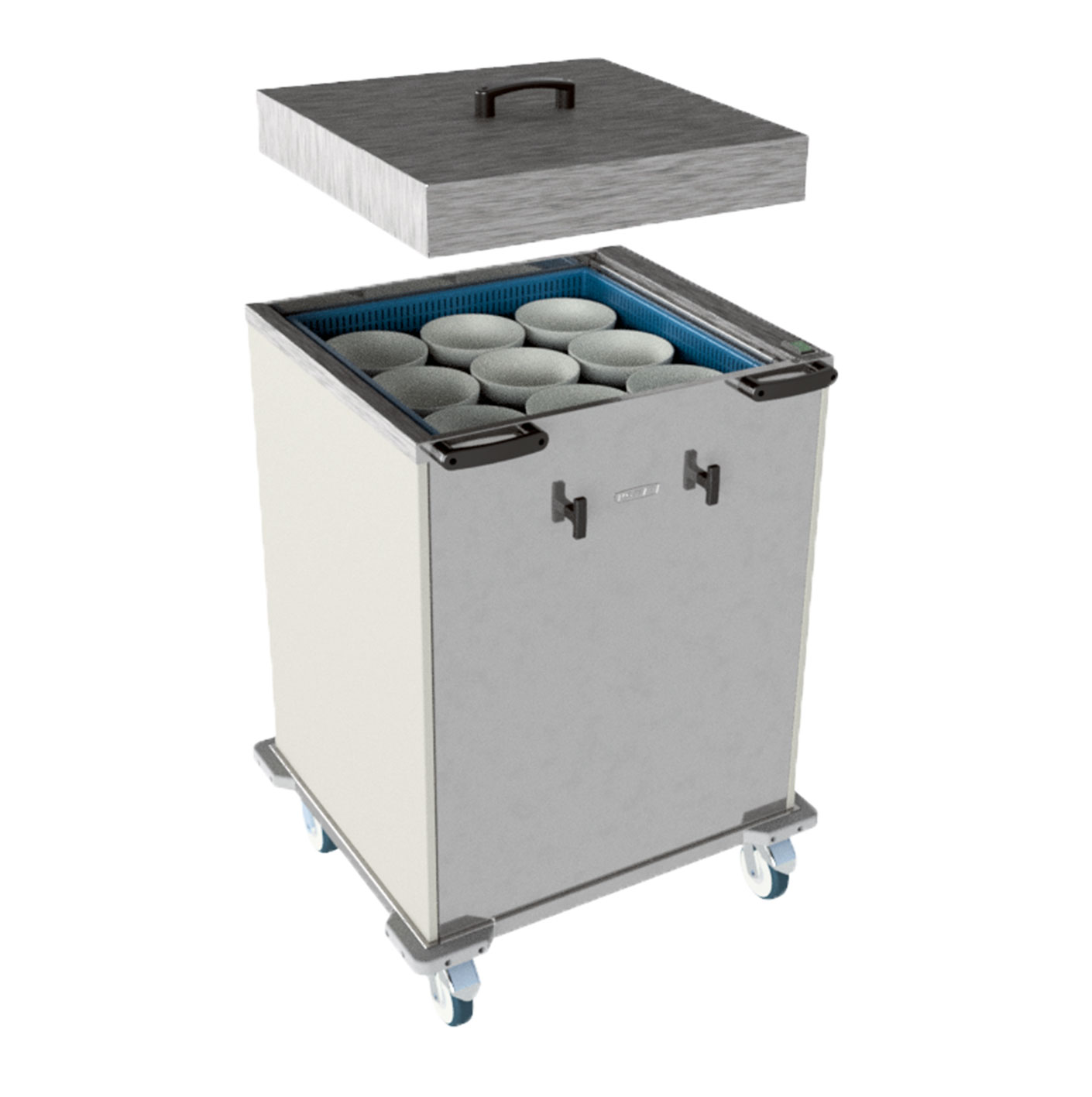 Enclosed basket dispenser / warmer, with a Pop-Up variable spring system to accommodate different weights of baskets. Lift off top basket and the next one automatically moves up level into position delivering stacked dishwash type baskets holding different formats and sizes of crockery. This compact mobile unit is perfect for Keeping crockery and plates warm and in one place. Load from the wash-up area & transfer to the point of service. Hygienic design, made of high-quality stainless steel and durable plastic coated outer panels. Four corner bumpers, protect the equipment on all sides. Ergonomically shaped push pull handles ensure optimal handling. Complete with a removable cover the dispenser runs on all-swivel 4” (100mm) casters of which two are lockable.
