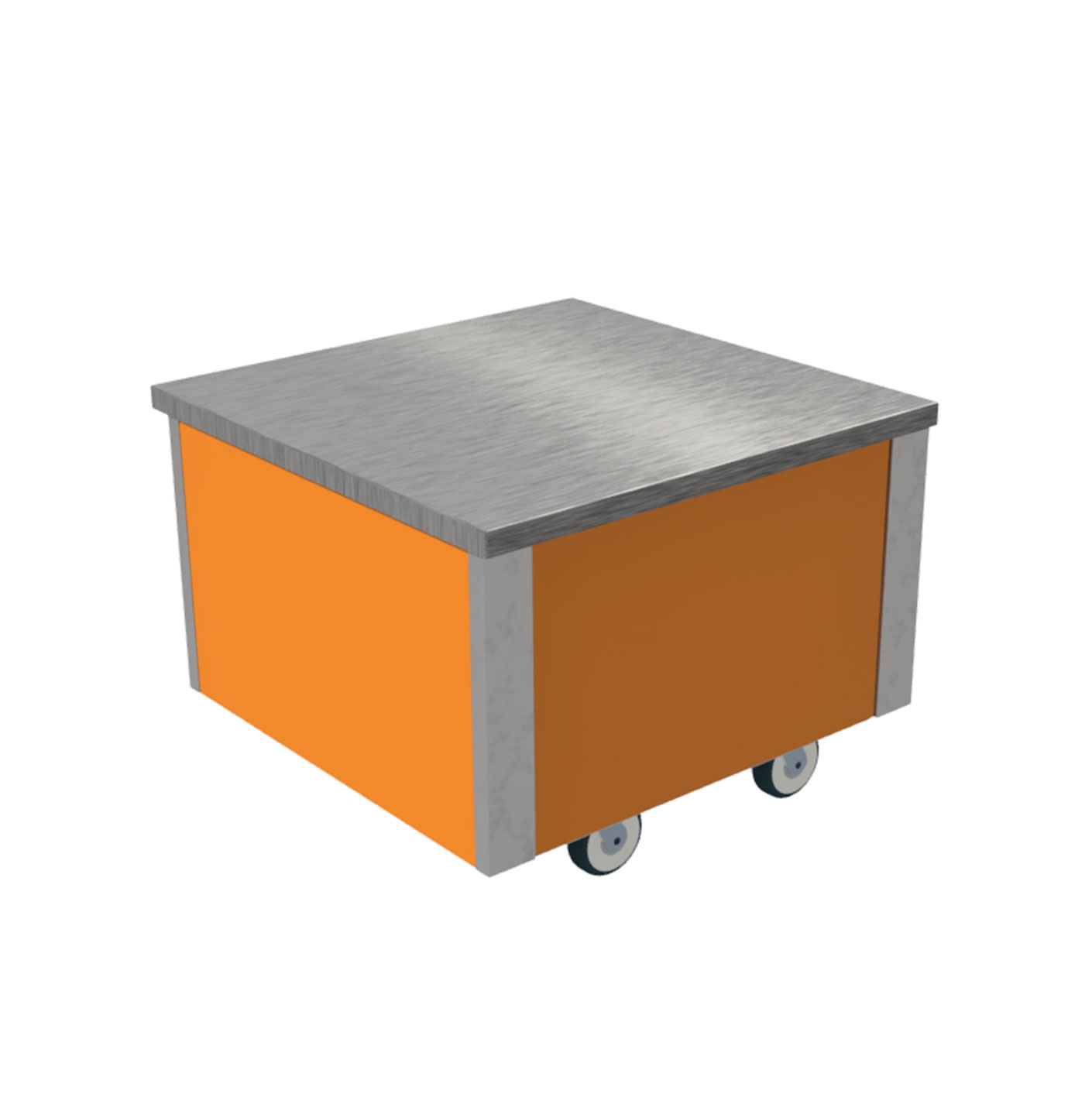 Counter unit set at a low level designed to link up with any of the other models in the range this simple unit can be used as a tray pickup point or for table top display stands or soup kettles etc. Constructed from bright polished stainless steel for easy cleaning. complete with a storage area underneath.