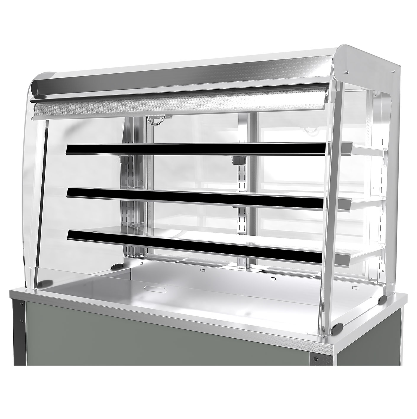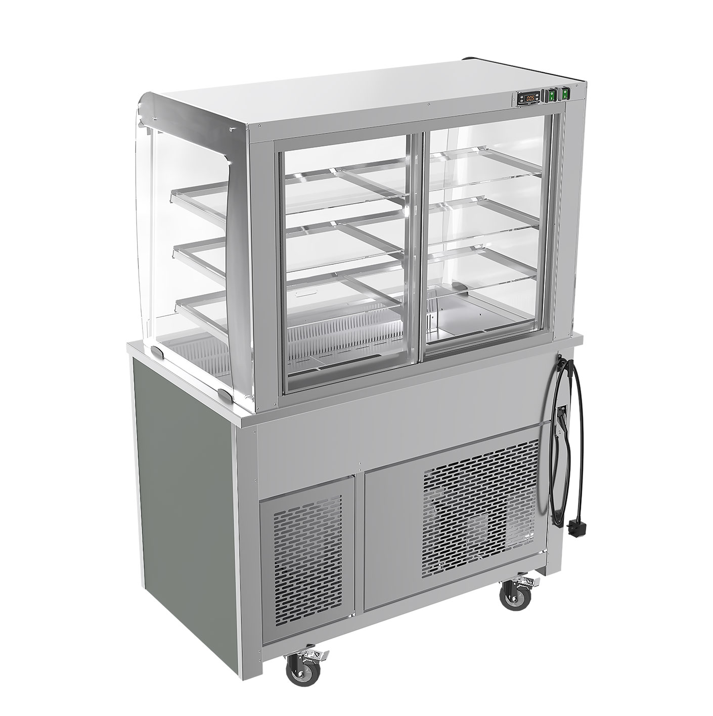 a constant recirculating cold air curtain completely enveloping the food displayed. - Holding pre-chilled food at a safe, regulated temperature while retaining taste and freshness.