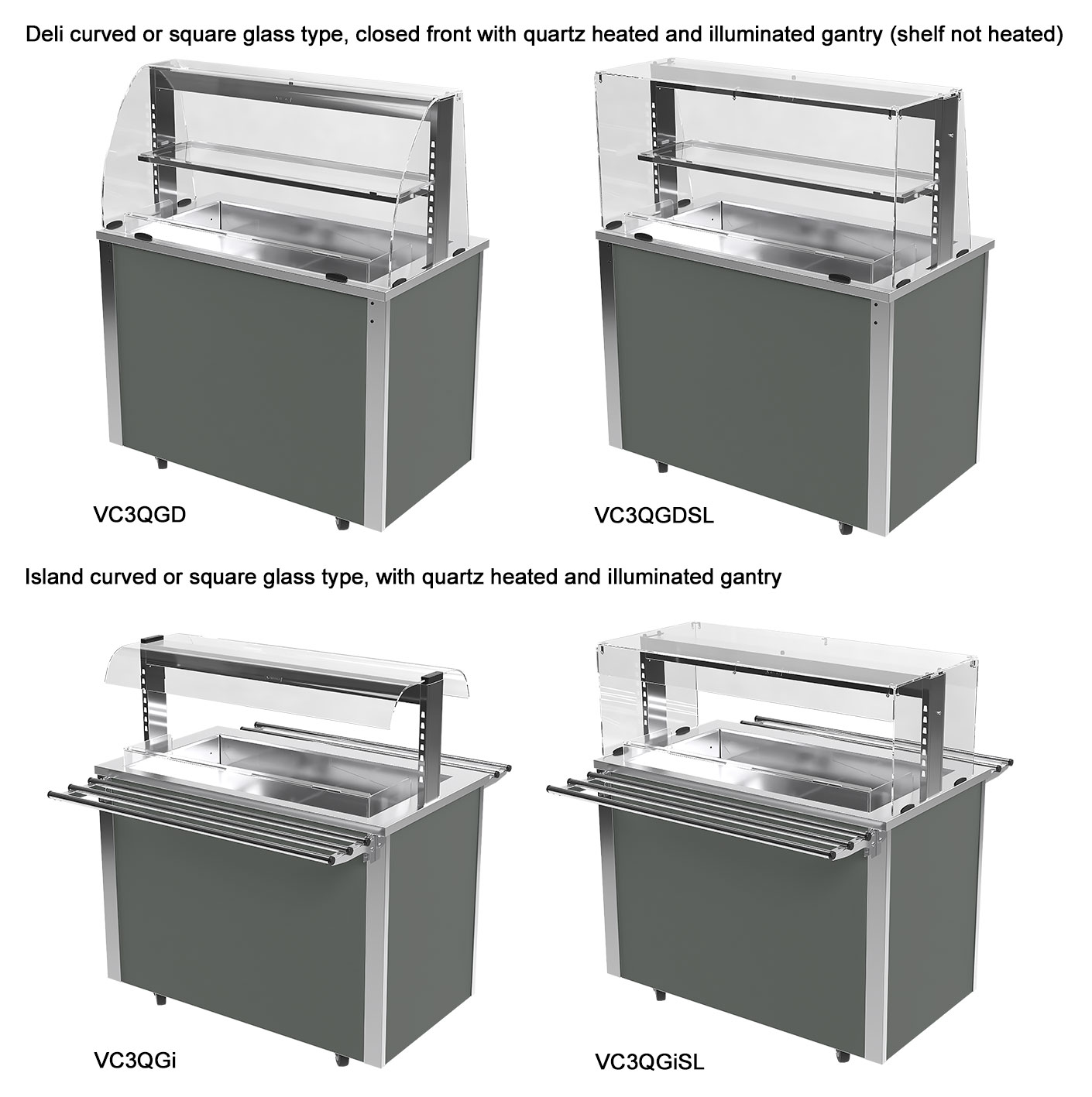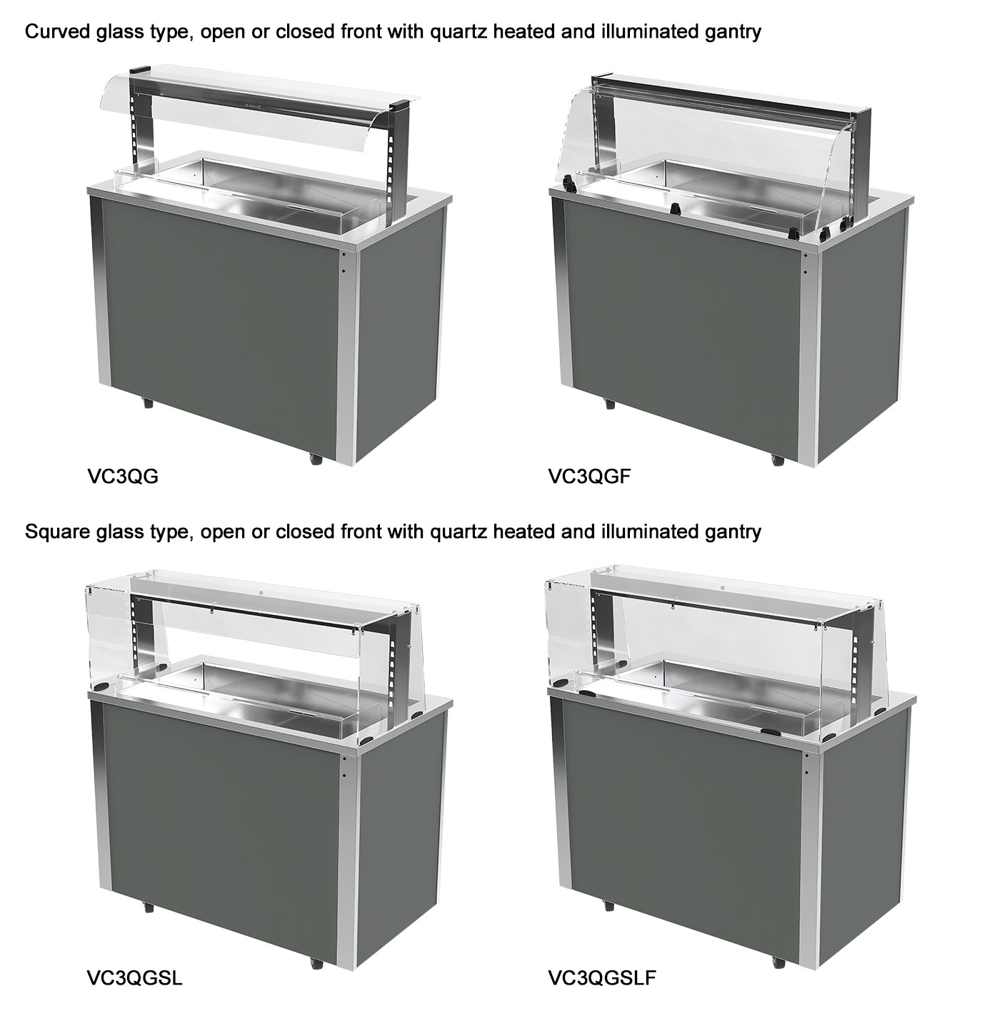 - 4 models in the range holding 2 to 5 GN 1/1 gastronorm type containers.