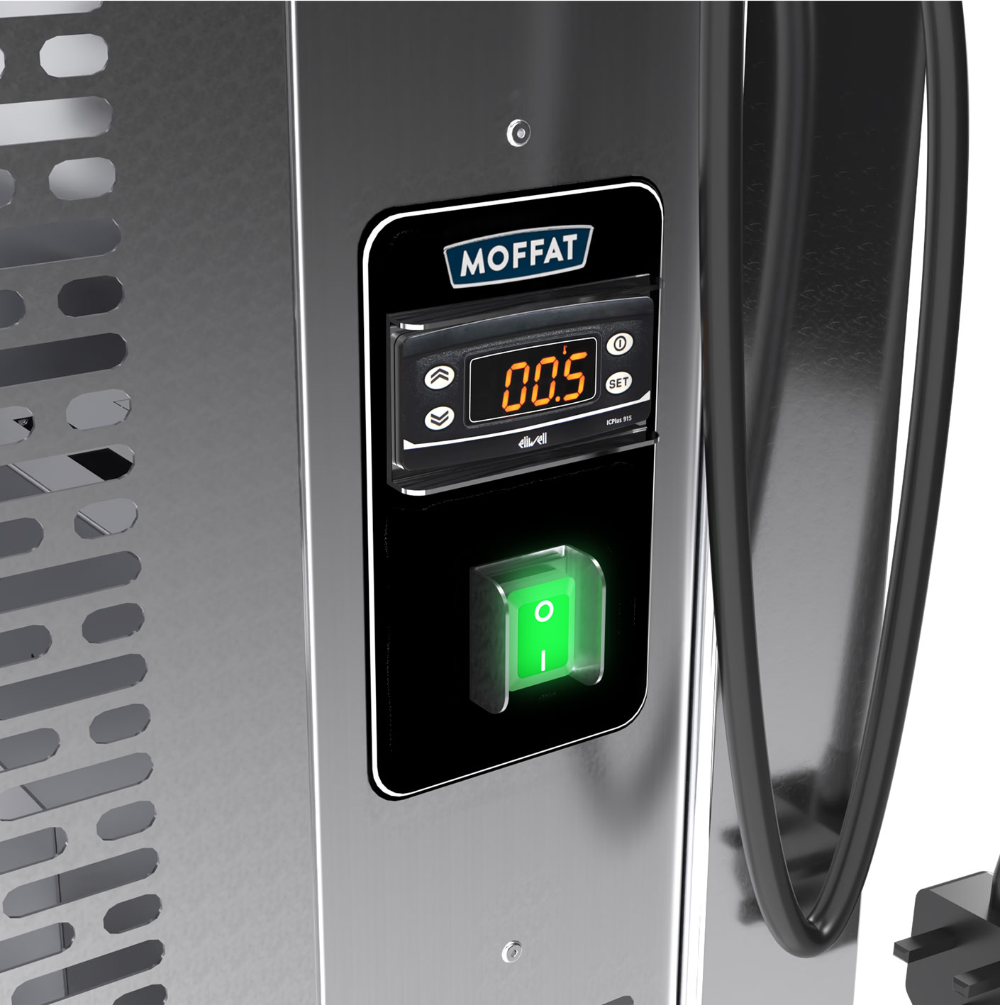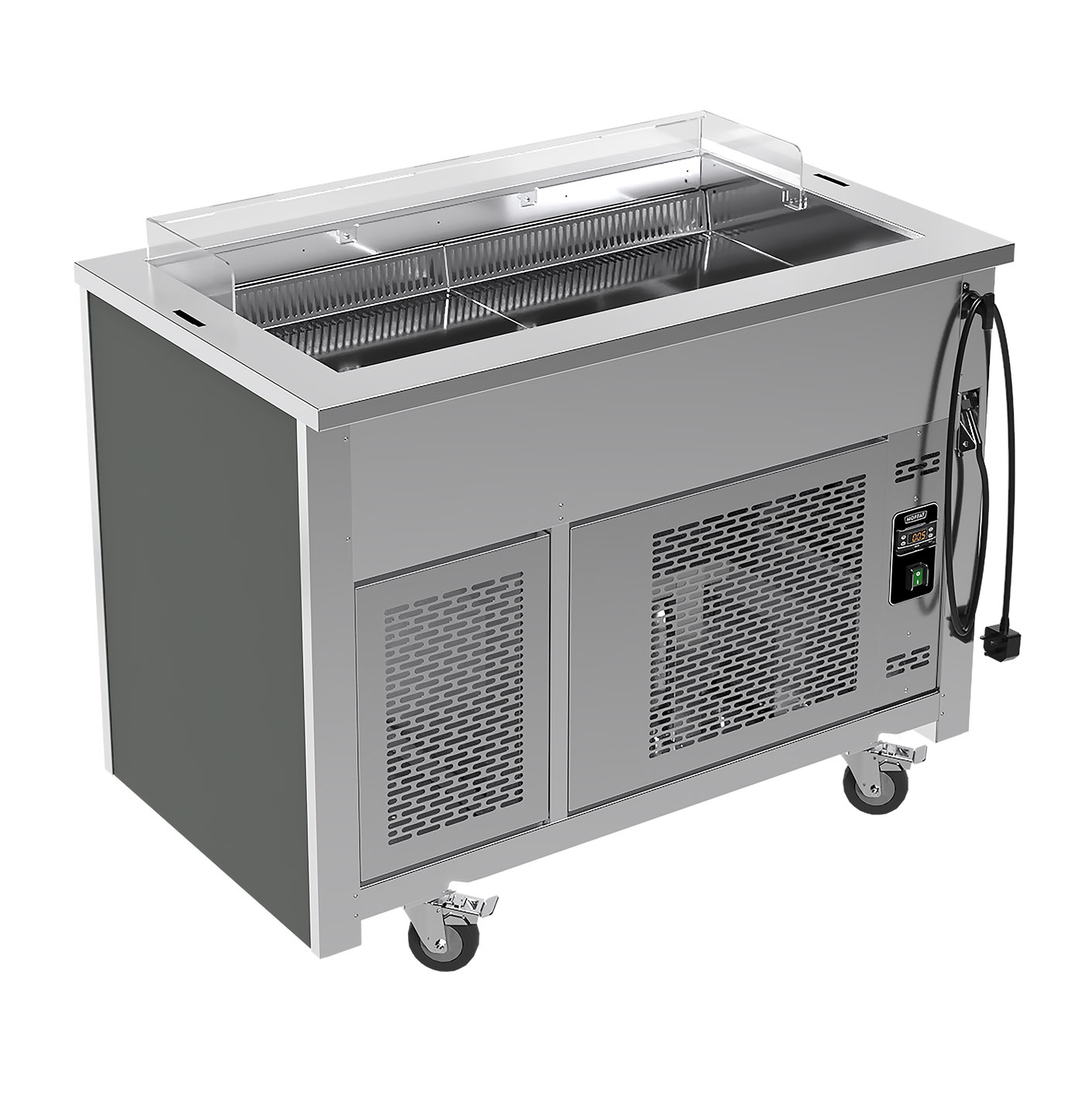 - Moffat innovative “Polar Air Stream” system provides a constant wall of cold air which moves across the well blanketing the food displayed and recirculates back through the system.