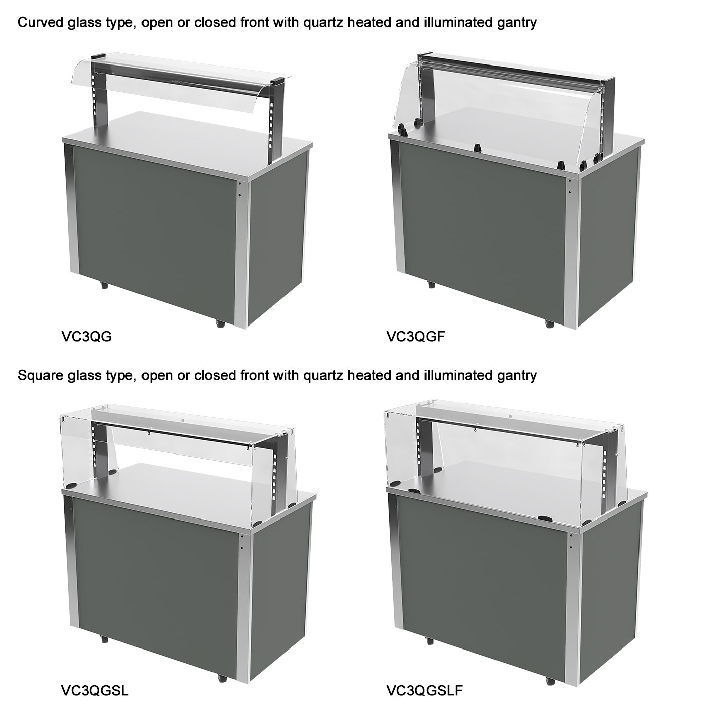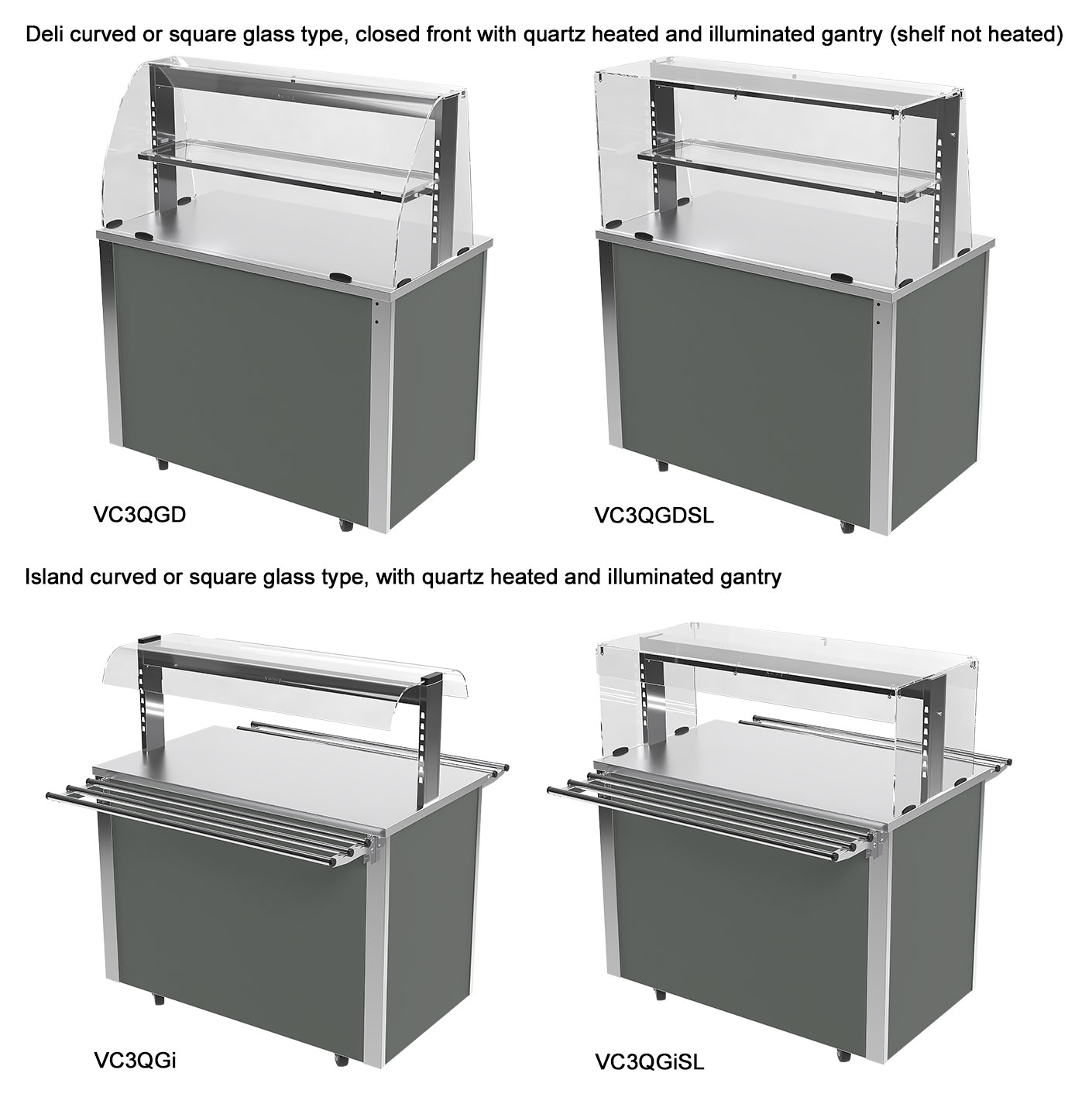 - 4 models in the range holding 2 to 5 GN 1/1 gastronorm type containers.